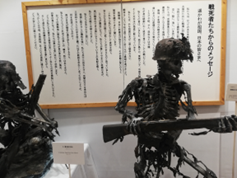 先の戦争の兵士の死因の多くは餓死である。そんな史実をも訴える硬く冷たいはずの鉄の造形物たち。どう史実を忠実に学び、想像力を膨らませ、熱い鉄を叩き、切り、造形し、何を吹き込んだら、こんなふうにいのちの訴えを伝え、胸を打つ作品に形作ることができるのか、不思議でしかたがない!そんな胸揺さぶられる体験を与えられた作品展でした。 (佐藤由美子)