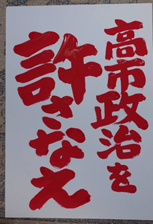 (高市政治を許さなえ)のポスターは、杉並にある「9条の家」の金野奉晴さんが製作されたものです。9条の家に伺った時に見せていただき、気に入ったので送っていただきました。これ、選挙の時に使えますね!少しありますのでご希望の方はおっしゃってください)