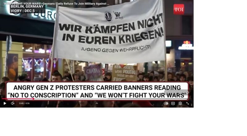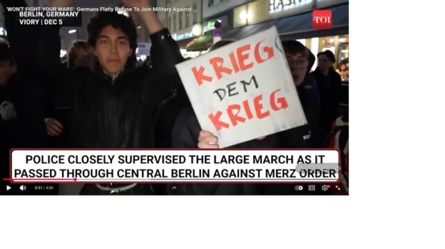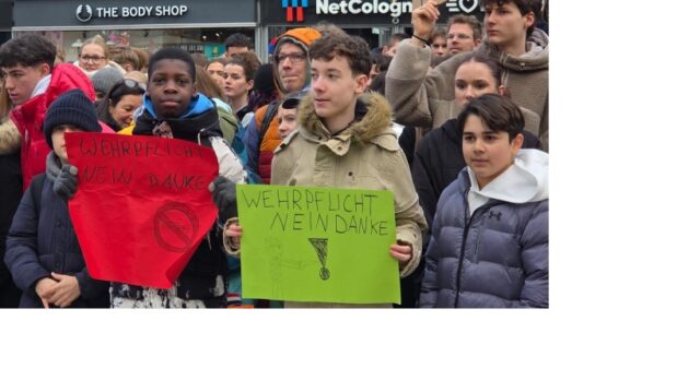 そして12月5日、金曜日、ドイ全国で徴兵制に反対する生徒たちの”学校ストライキ” がe行われた。学校ストライキを支援する平和運動団体のひとつである”Nie Wieder Krieg (もう2度と戦争をやらない)”の報告によると、「学校ストライキは大成功をおさめた。100以上の都市で55,000人以上の若者が集まり街頭でデモを行った」とのことだ。