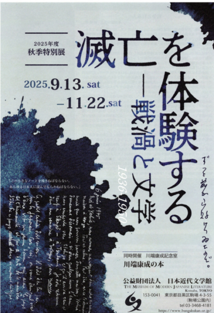 11月21日、最終日が明日に迫り、あわてて出かけた「滅亡を体験する―戦渦と文学1936-1950」。山手線の日暮里から渋谷に出て、井の頭線への乗り換えの通路が、こんなにも長かったかと。駒場東大前から歩いて7分との案内だが、それも、10分はかかったか。