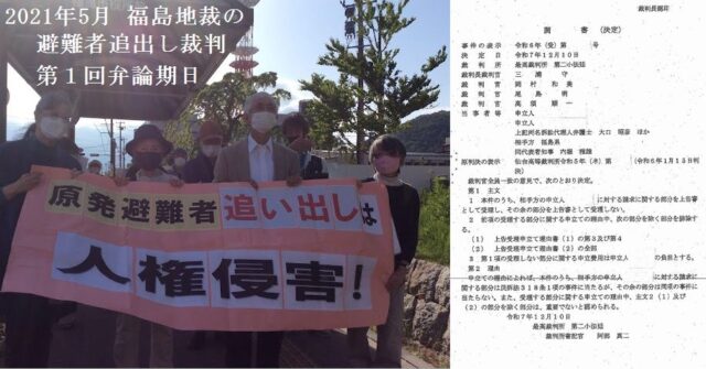 ・これまでなら原発事故の救済に関する訴訟(子ども脱被ばく裁判を筆頭とする)は最高裁では門前払い(受理しないでおしまい)だったのが、今回、初めて受理する、本題の法律問題に応答するとしたこと。