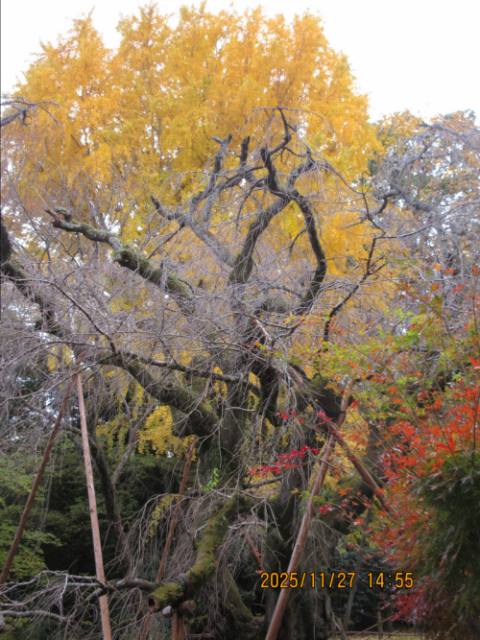 11月27日、ベランダ先の大イチョウ、今日、7日には、かなりの黄葉が降り積もっていた。