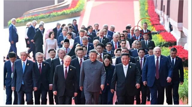 中国の対日戦勝記念式典に、欧州から参加したのは、スロヴァキアとハンガリー だけ。2国ともプーチンと習近平に忖度してのことだが、集合写真を見ると、スロヴ ァキア首相とハンガリー外相の居場所がないようだ。フィツォはこの後、帳尻を合わせるためにウクライナを訪問し、ゼレンスキー大統領と会談している。これにたいして、スィーヤルトーはロシアと合同軍事演習直前のベラルーシを訪問している ハンガリーオルバン政権のロシアへの忖度は尋常でない。