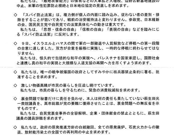 • 第122回「NO WAR! 八王子アクション」アピール決議