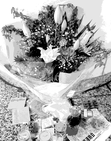午前5時、京王線の始発に向かうまばらな人を避け、いつもの柱の下に祭壇らしきものを作り献花。一分間の黙祷。共に再会を祝しワンカップで献杯。死者と二言三言語り合う。それだけで、この式典は終わる。