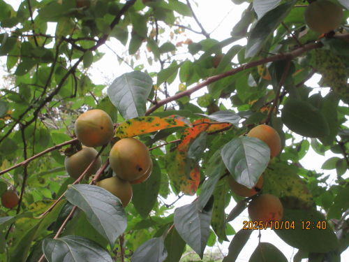 色づきはじめた柿、例年より早いの、遅いのか。各地の紅葉は例年より遅いとも聞くが。