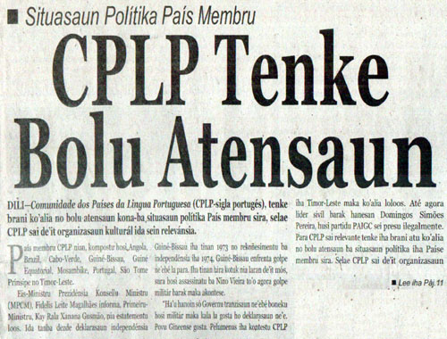 「加盟国の政治状況 CPLPは注目を集めなければならない」(見出し)。