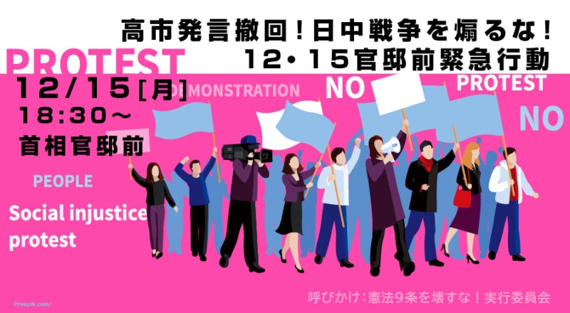 12・15官邸前緊急行動 高市発言撤回!日中戦争を煽るな!