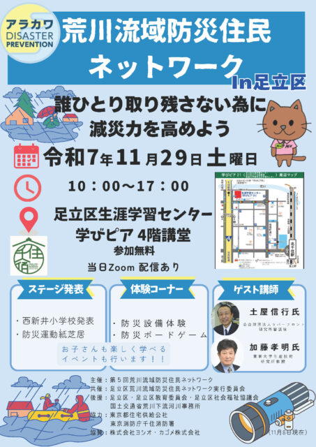 11/29 第5回荒川流域防災住民ネットワークのご案内催し物案内2025年11月25日2025年11月25日 muraon No comments著者: 中瀬勝義 : 海洋観光研究所・NPO地域交流センター タグ: 中瀬勝義, 防災Tags中瀬勝義防災